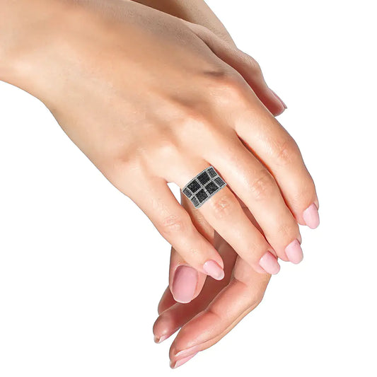 Anillo de cóctel de oro blanco de 14 quilates con diamantes blancos y negros tratados de 1 1/2 quilates (color HI, claridad I1-I2)