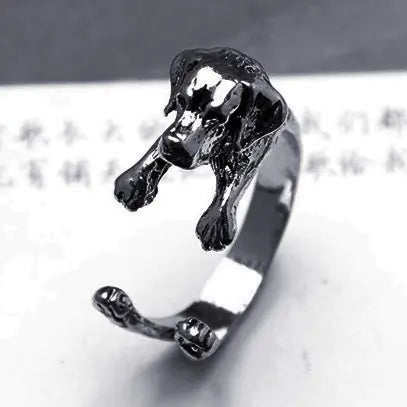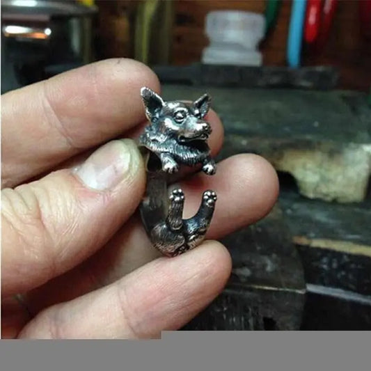 Anillo ajustable vintage con diseño de perro pastor y bulldog